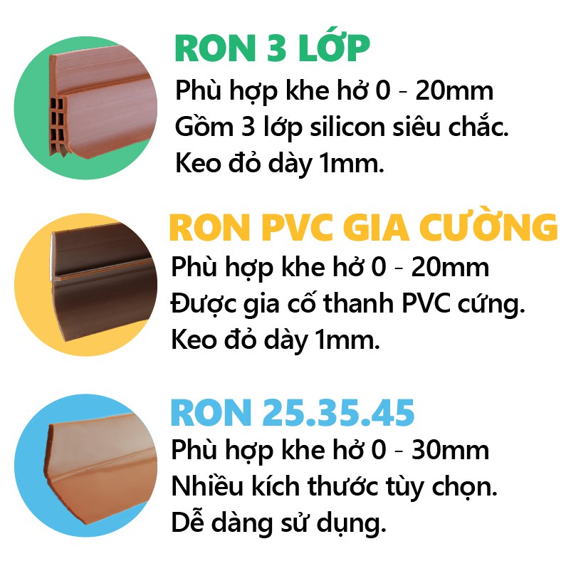 - Ron PVC: Phù hợp cho khe cửa từ 0-18mm