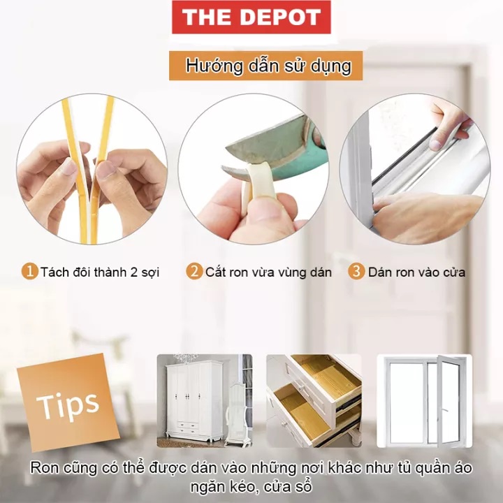 Giới thiệu Ron Chữ D Dày 6mm Dán Khung Cửa Gỗ Tự Dính Cách Âm, Ngăn Bụi, Giảm Chấn Cuộn 6m - DepotFix