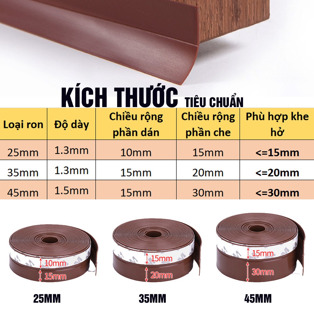 - Ron dán khe cửa chống ồn kích thước: dài 2000mm x dày 1mm x rộng từ 25mm-110mm (25-35-45-60-110)