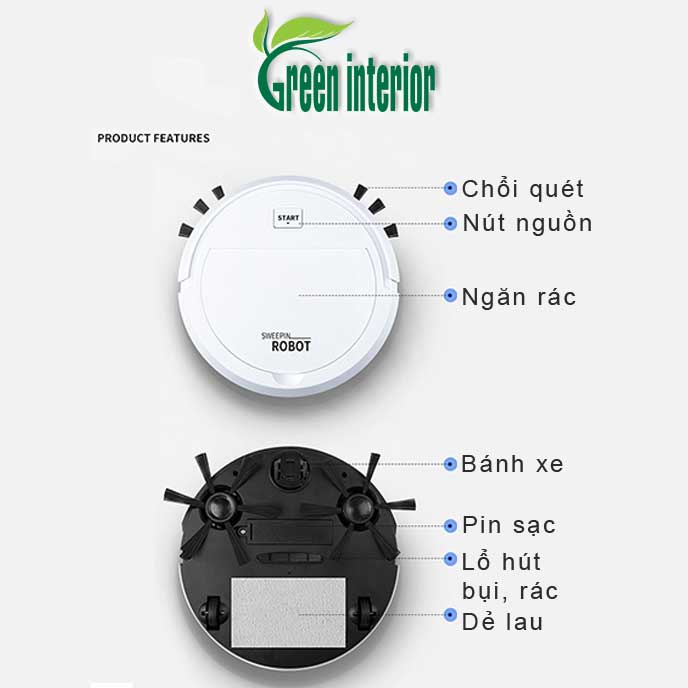 Rotbot hút bụi lau nhà thông minh, Robot mini quét nhà lau sàn 3 tính năng hút quét lau nhà thông minhSIÊU THỊ NỘI THẤT XANH - 093_1010_551 Hỗ trợ nhanh qua hot.line/za.Lo