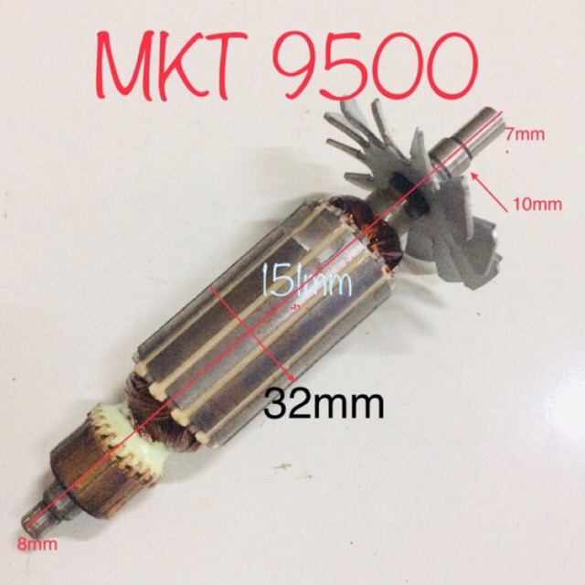 ROTOR MÁY MÀI CẦM TAY MKT 9500 LOẠI 100mm CHIỀU DÀI 151mm THÂN 32mm CỐT BẠC ĐẦU 10mm ĐUÔI 7mm