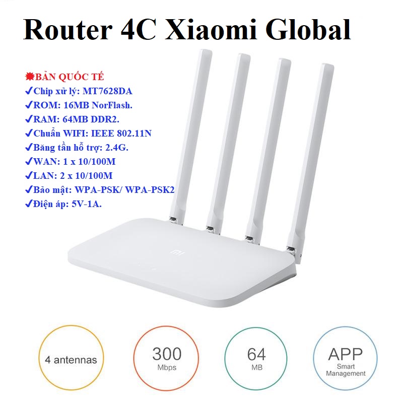Máy tính & Laptop > Thiết Bị Mạng > Bộ Phát Wifi || Router 4C Xiaomi Quốc tế Bộ phát wifi Xiaomi Router4c Mi Router 4C R4CMCòn hàng