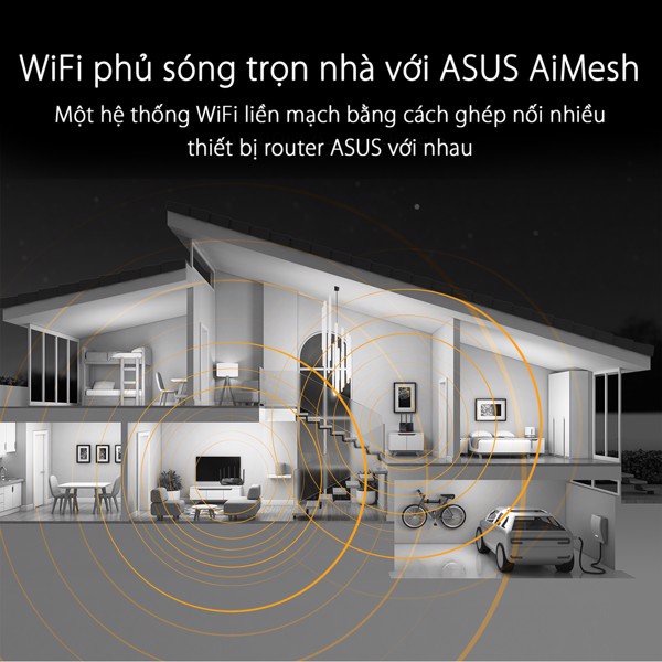 • Hỗ trợ ASUS AiMesh - Tạo kết nối lưới mạng cho toàn bộ ngôi nhà một cách lin hoạt, mượt mà với các bộ định tuyến tương thích với AiMesh.