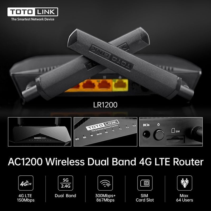 📍 Router - Bộ phát wifi không dây Totolink LR1200 4G LTE băng tần kép AC1200📌 Wi-Fi băng tần kép AC1200