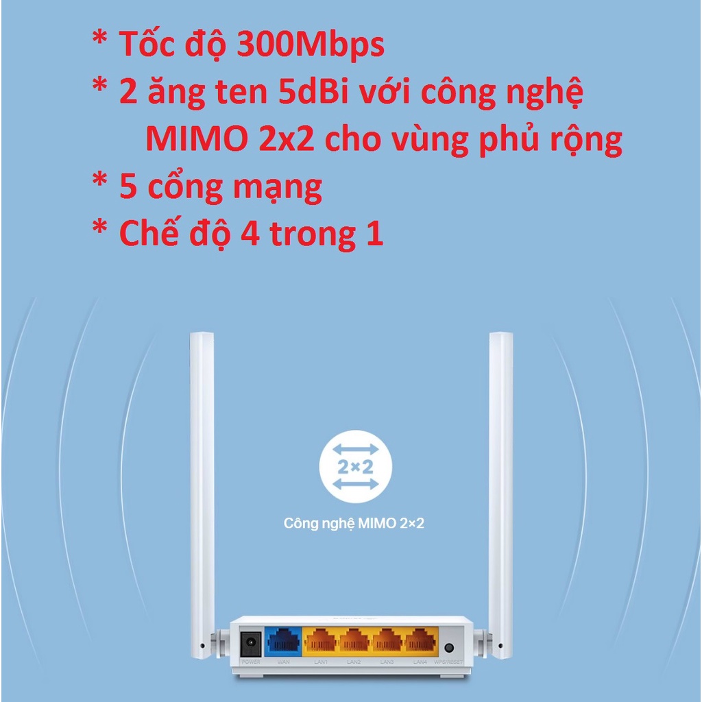 - 2 Ăng ten 5dBi công nghệ MIMO 2x2 cho vùng phủ rộng
