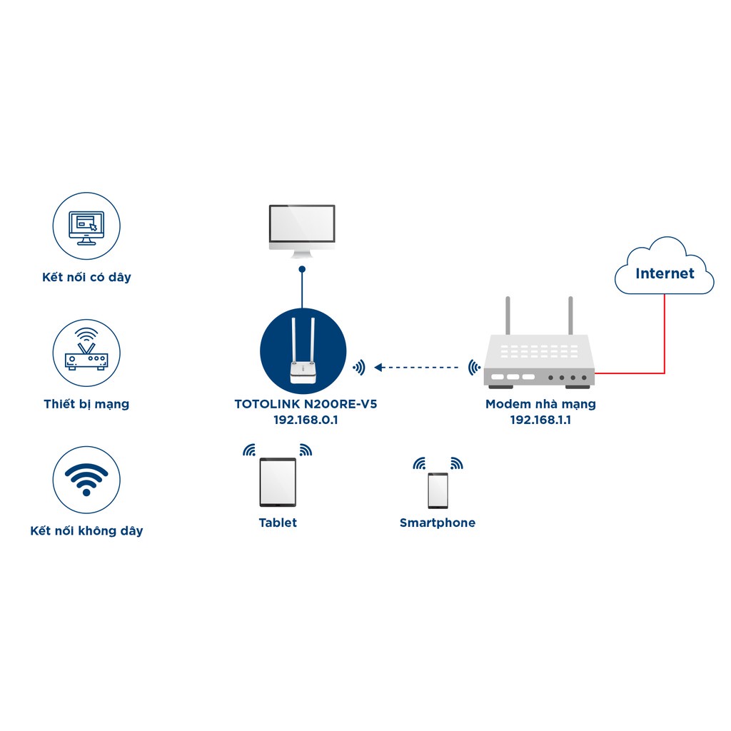 - Mở rộng vùng phủ sóng không dây của modem chính đến mọi nơi trong ngôi nhà.