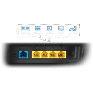 4 x cổng Gigabit LAN tốc độ có thể nhanh hơn 10 lần kết nối Ethernet 100 Base-T.