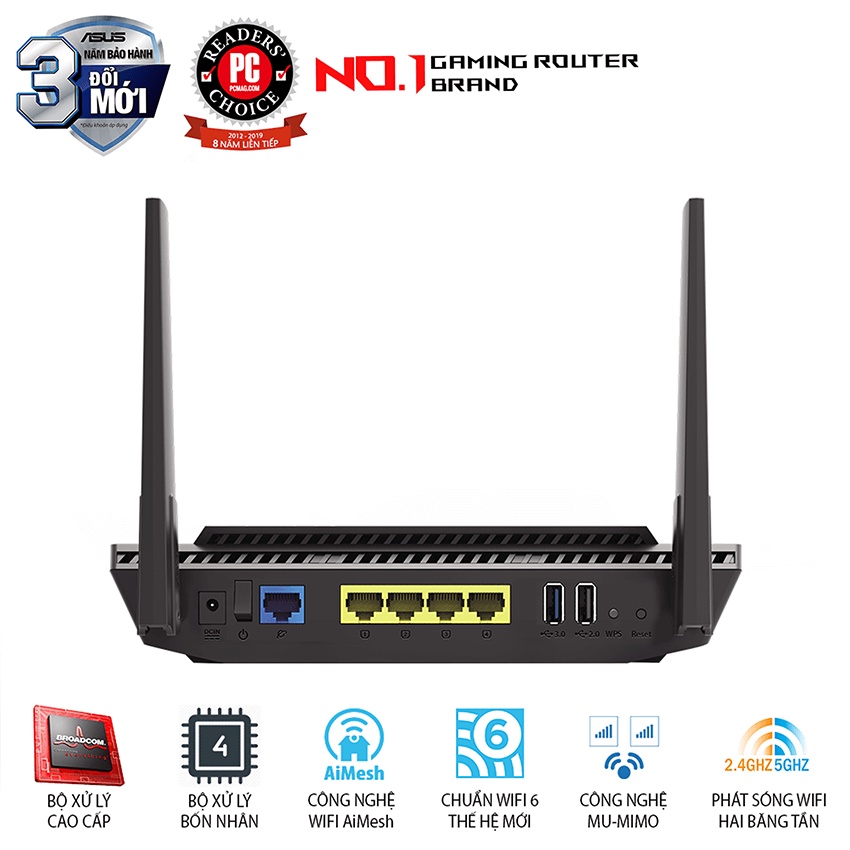 ✔️Bộ định tuyến AX1800 Dual Band WiFi 6 (802.11ax) hỗ trợ công nghệ MU-MIMO và OFDMA, với bảo mật mạng AiProtection Pro được cung cấp bởi Trend Micro, tương thích với hệ thống WiFi AiMesh của ASUS