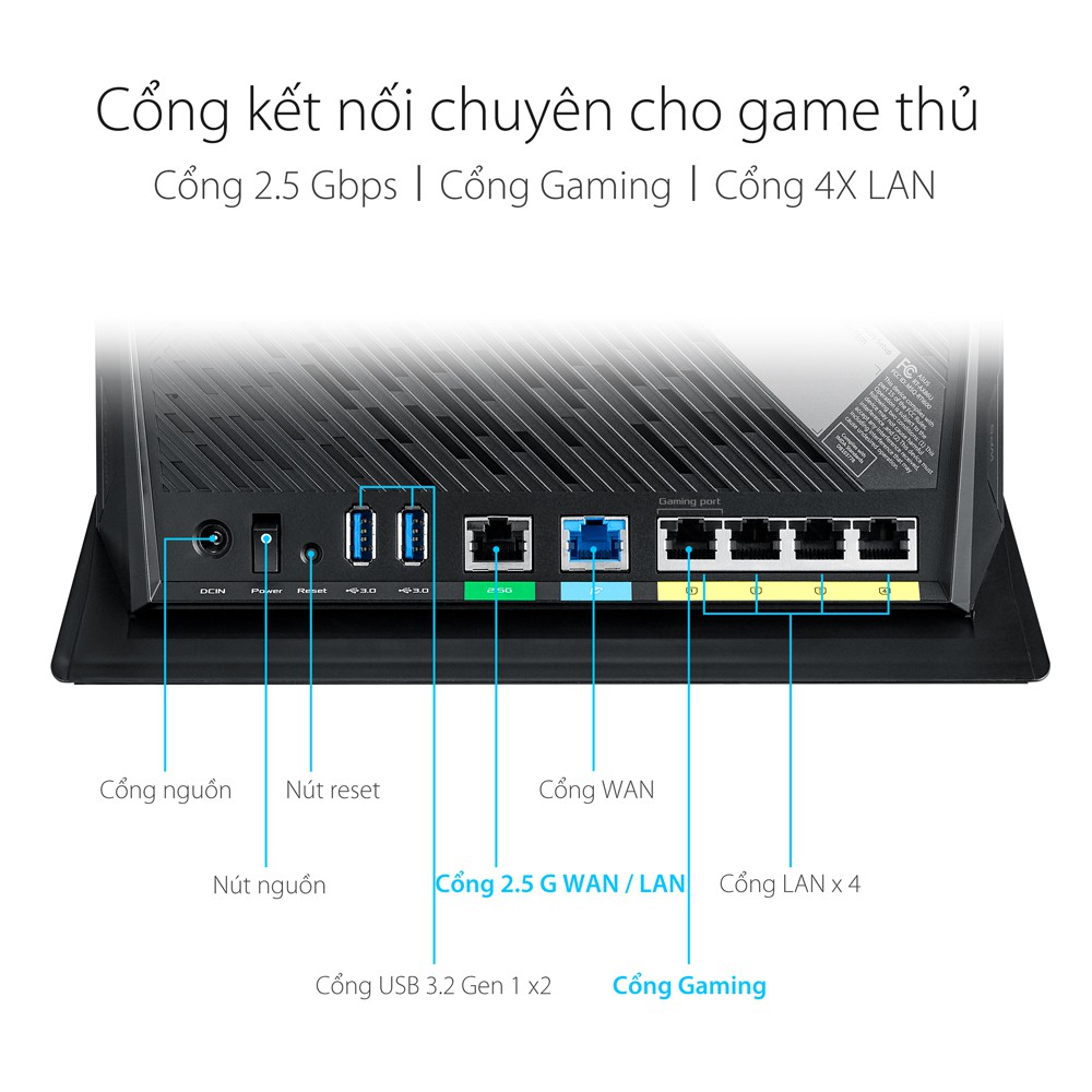 -Tốc độ có dây và không dây 2 Gbps thực - Kết nối mạng 2 Gbps tổng hợp, cổng 2,5 Gbps có dây và WiFi 6