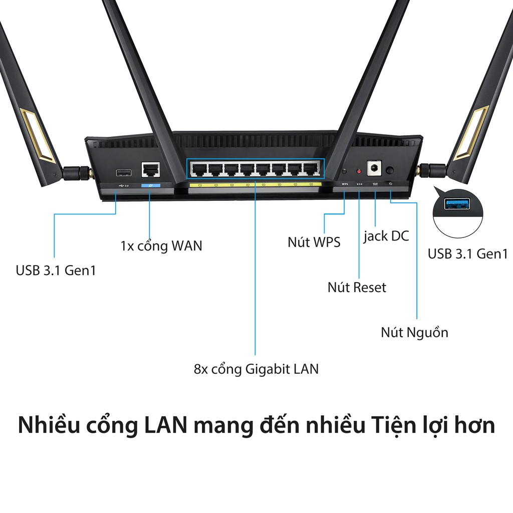 Router Wifi ASUS RT-AX88U Hai Băng Tần, Chuẩn AX6000 (Chuyên Cho Gaming, 4K Streaming)- Hàng Chính Hãng