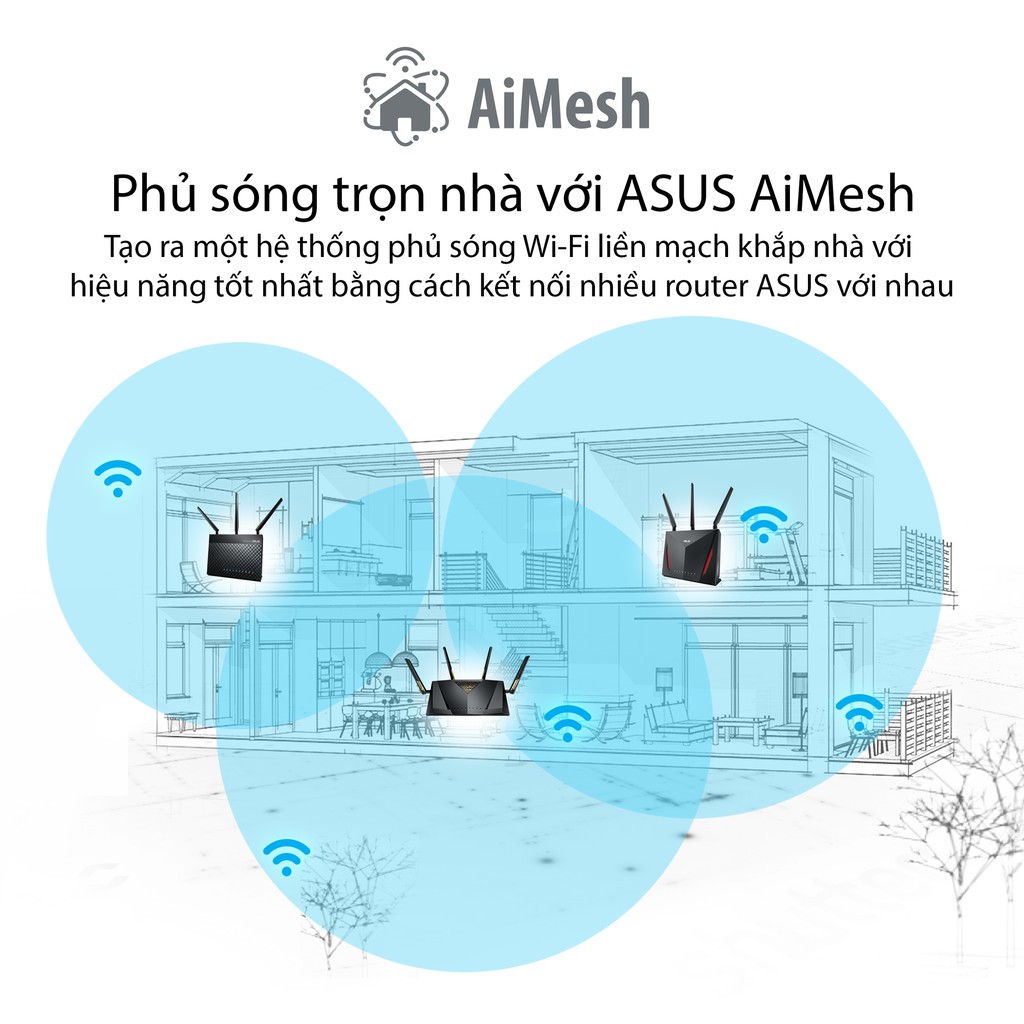 Với chuẩn WiFi 802.11ax mới nhất được trang bị công nghệ OFDMA, RT-AX88U cho dải tín hiệu WiFi cao hơn và vùng phủ sóng lớn hơn bằng cách chia từng kênh thành các kênh con. Những kênh con này có băng thông nhỏ hơn giúp chúng đi xa hơn 80%1, đảm bảo kết nối WiFi tốt hơn trong toàn bộ căn nhà của bạn.