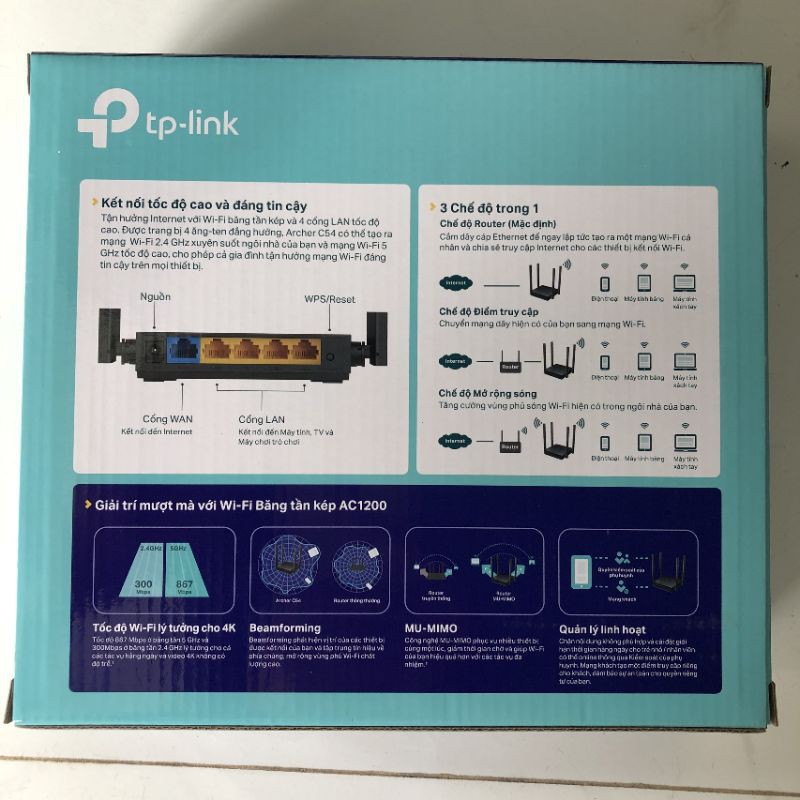Máy tính & Laptop > Thiết Bị Mạng > Bộ Phát Wifi || Router wifi băng tần kép AC 1200Mbps Archer C54 - Hãng phân phối chính thứcCòn hàng