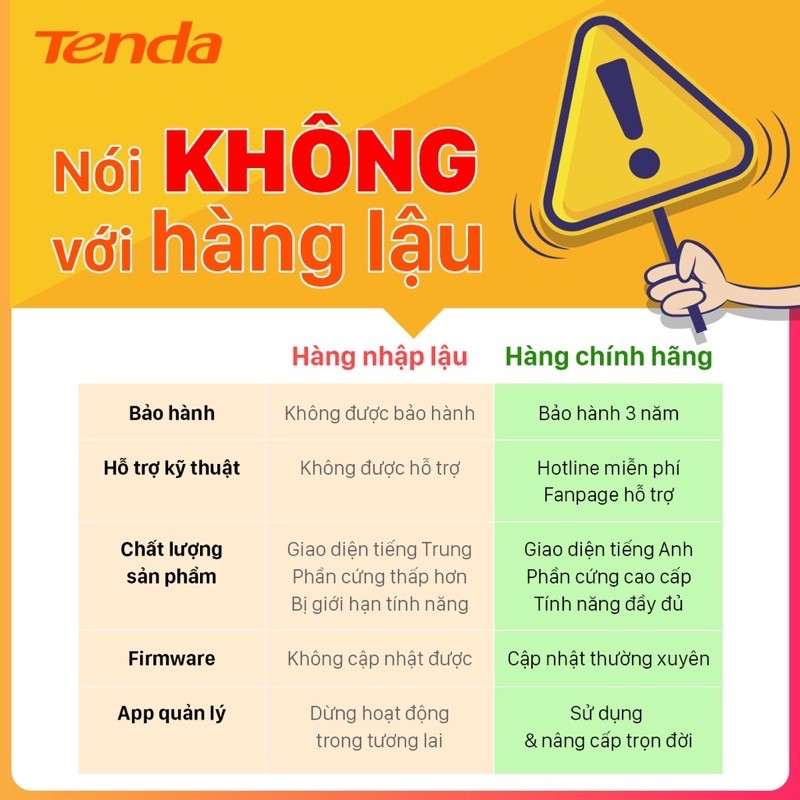 Đây là hàng mới 100% full box , (đặc biệt chính hãng bảo hành tại việt nam).** Lưu ý : Một số nhà bán hàng bán giá rẻ vì hàng nhập khẩu và không được bảo hành bởi Tenda Viet Nam