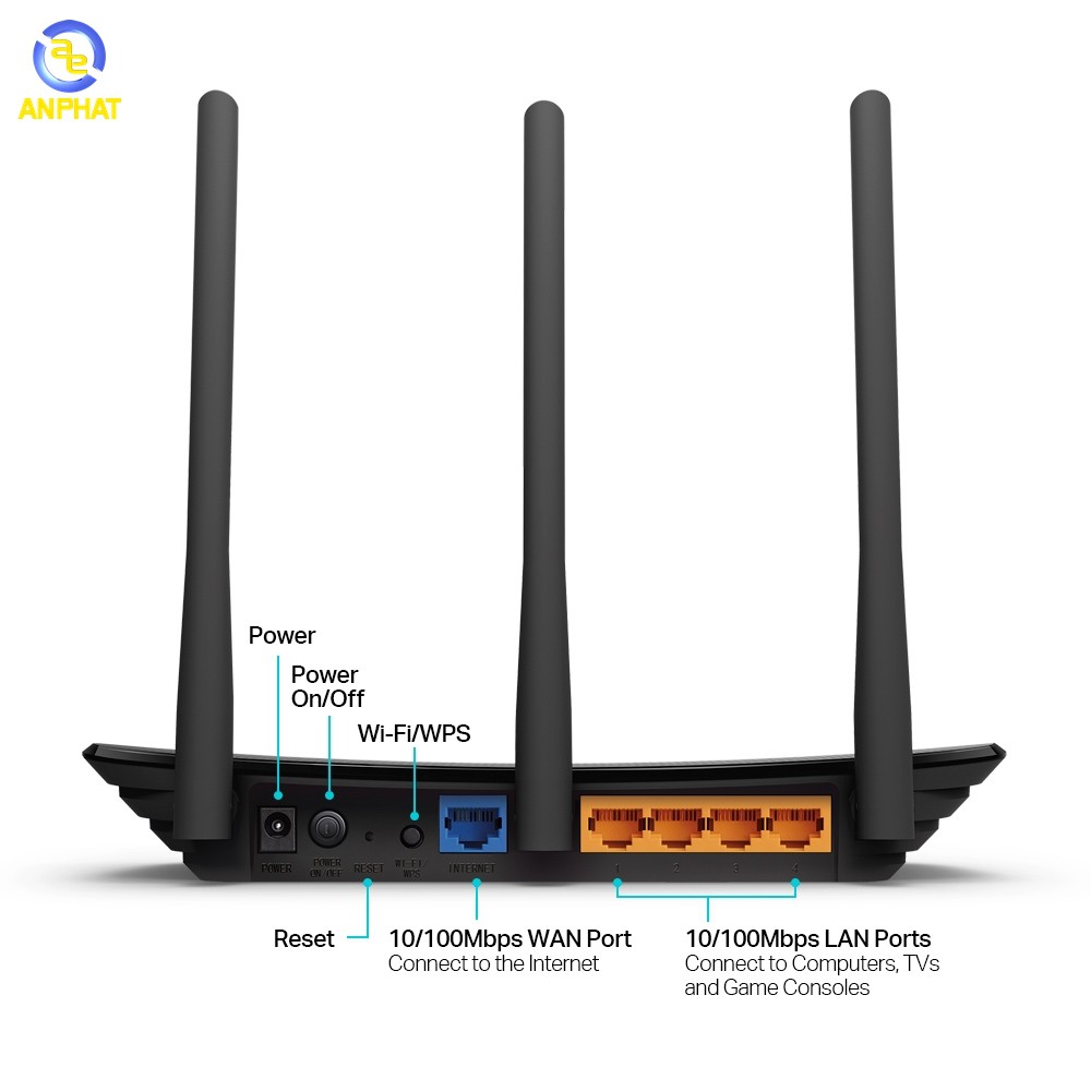 Tốc độ không dây lên đến 450Mbps, rất thuận lợi để sử dụng cho các ứng dụng nhạy băng thông như xem video HD trực tuyếnBa ăng ten gắn ngoài tăng cường hiệu suất và sự ổn định của kết nối không dây