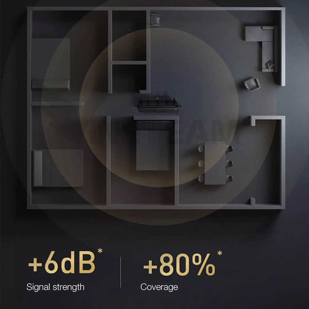 ✔ Router được trang bị chip xử lý chuyên dụng của Qualcomm, giúp cung cấp môi trường mạng ổn định hơn. Ngoài ra, 6 bộ khuếch đại tín hiệu độc lập được tích hợp bên trong router cũng mang đến vùng phủ sóng rộng hơn, khả năng xuyên tường tốt hơn và cho tốc độ kết nối nhanh hơn. Một chiếc Mi Router AX6000 có thể dễ dàng bao phủ một căn hộ với ba phòng ngủ lớn