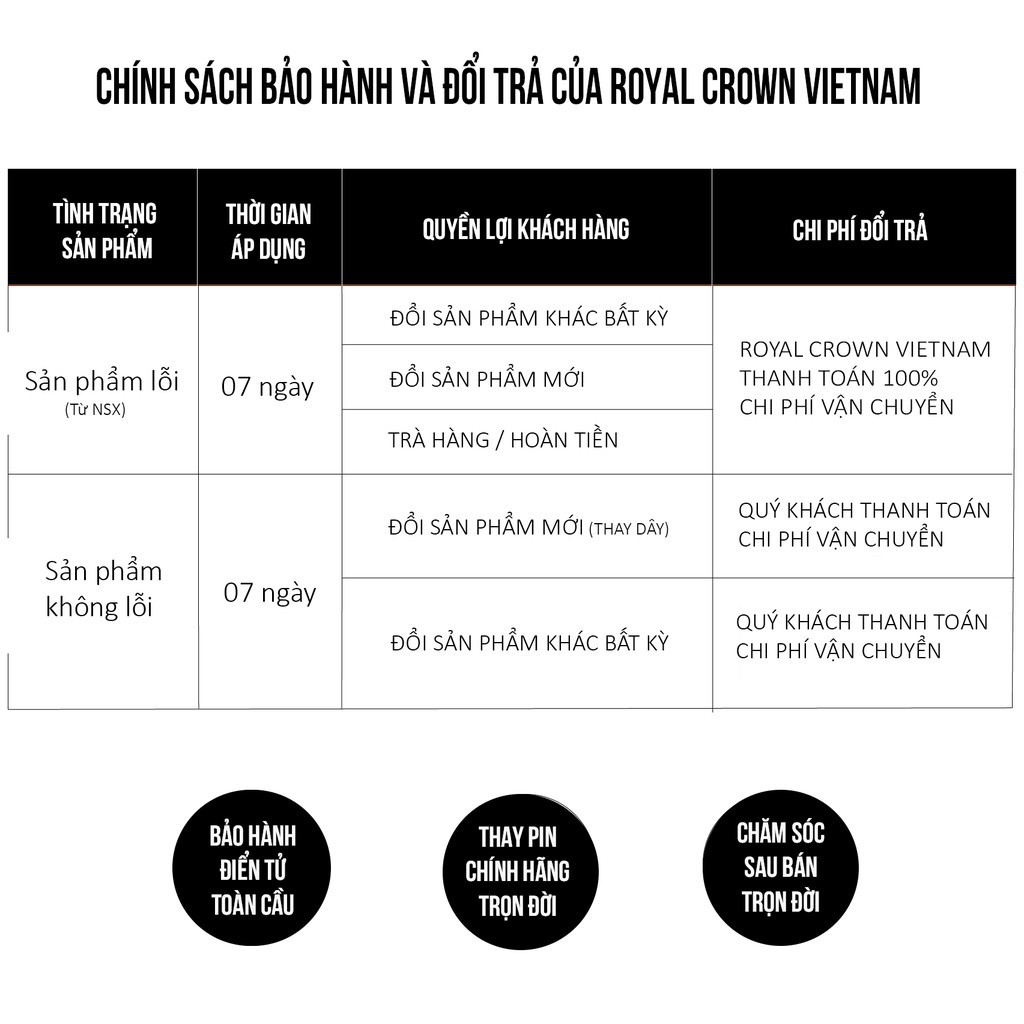 Từ 12/12/2017, đồng hồ Royal Crown chính hãng phải đảm bảo các yếu tố như sau: