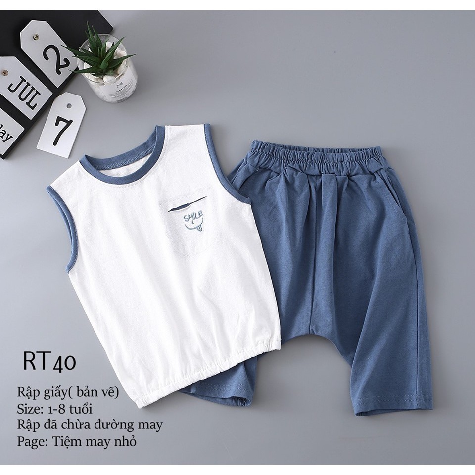 RẬP GIẤY(Bản vẽ) RT40 _ bộ đồ quần thụng ( 1-8 tuổi, không phải đồ may sẵn )Chất liệu : giấy