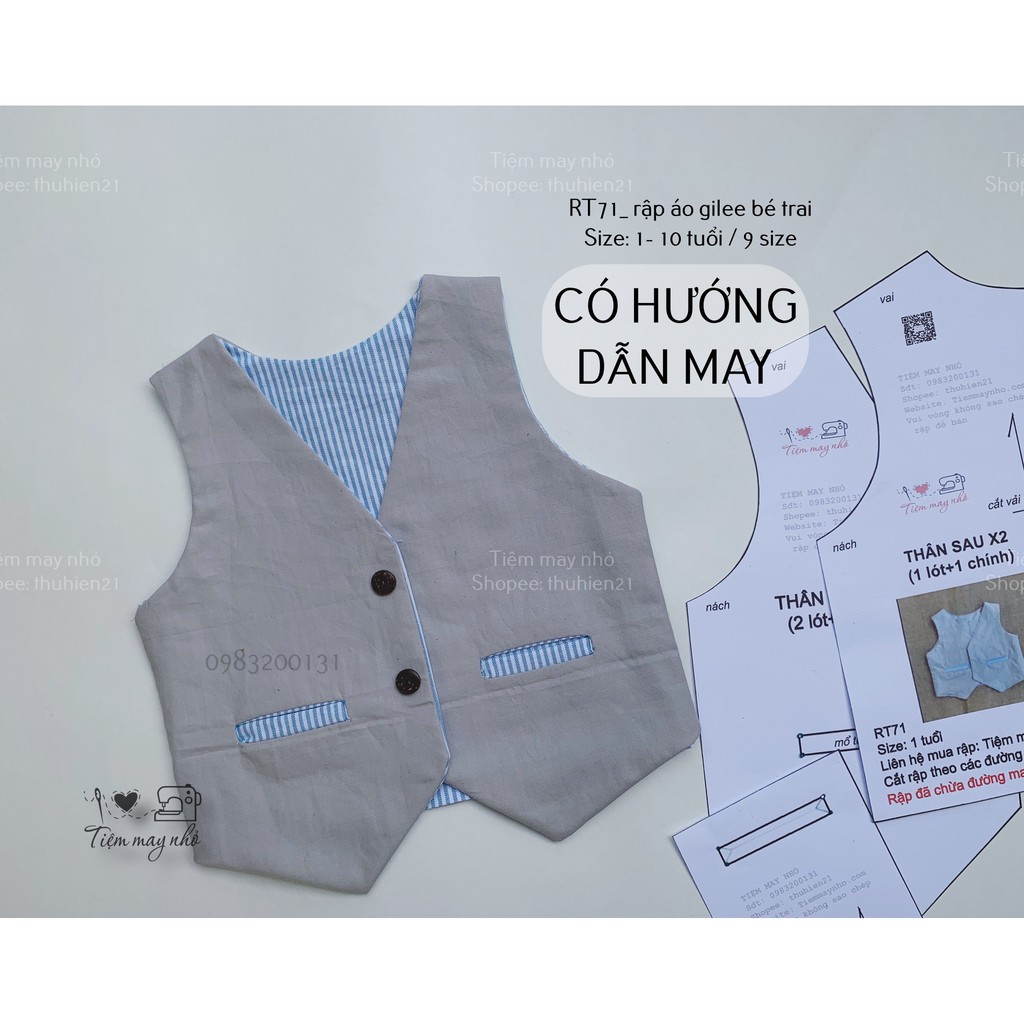 RT71_CÓ HD MAY_rập giấy may áo gile bé traiSize: 1-10 tuổi