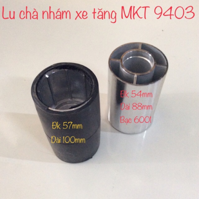 SẢN PHẨM DÙNG THAY THẾ SỬA CHỮA CHO LOẠI MÁY CHÀ NHÁM XE TĂNG MKT 9401 VÀ 9403 RULO MÁY CHÀ NHÁM KIỂU XE TĂNG - MKT 9401 MKT 9403 - LU TRƯỚC LU SAU MÁY CHÀ NHÁM (LU ĐEN ĐK 55mm CHIỀU DÀI 98mm - LU TRẮNG NHÔM ĐK 54mm DÀI 88mm+ Lu nhôm sử dụng bạc 6001