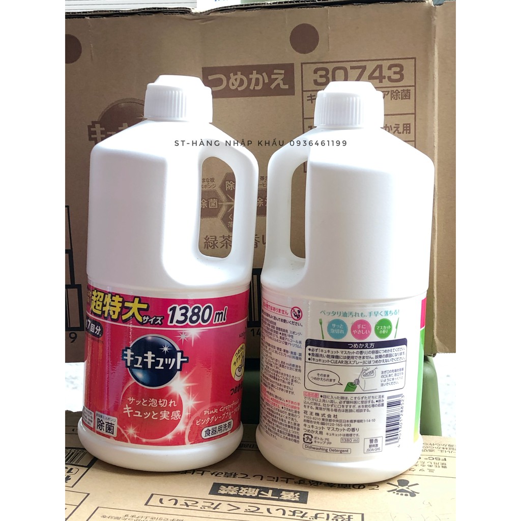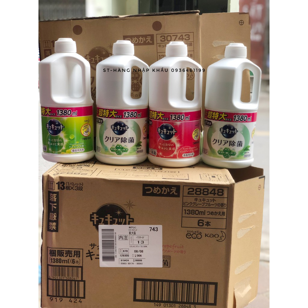 Nước rửa bát, đĩa, cốc Kao an toàn - Hương cam, nho,bạc hà,bưởi,trà xanh - Chai1380ml -Hàng nội địa Nhật Bản