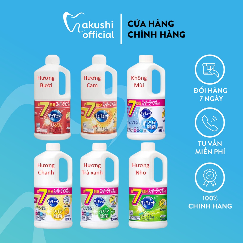 Nước Rửa Bát KAO Kyute Kyute 1380ml đậm đặc an toàn cho bé Hàng Nhật Nội Địa