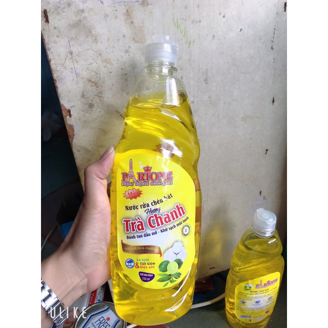 Nước rửa bát Parione hương Trà Chanh can nhỏ 725ml.- Giúp đánh tan dầu mỡ 1 cách nhanh chóng, khử sạch mùi tanh.
