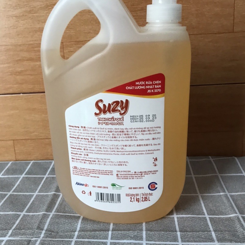 🍀 Nước rửa chén bán Suzy 2,1kg (2,05l) được sản xuất theo tiêu chuẩn chất lượng JIS K 3370 Nhật Bản - một trong những tiêu chuẩn khắt khe nhất đem lại sự an toàn tuyệt đối cho người sử dụng.🍀 Sản phẩm thân thiện với môi trường, giúp đánh bay dầu mỡ và chất bẩn bám dính trên đồ nhựa, gốm sứ, kim loại... Nhưng không gây hại da tay, không lưu lại mùi, không bám dính sau khi tráng rửa chén, bát...
