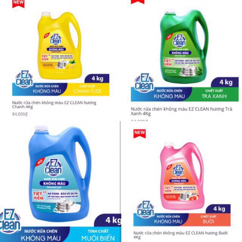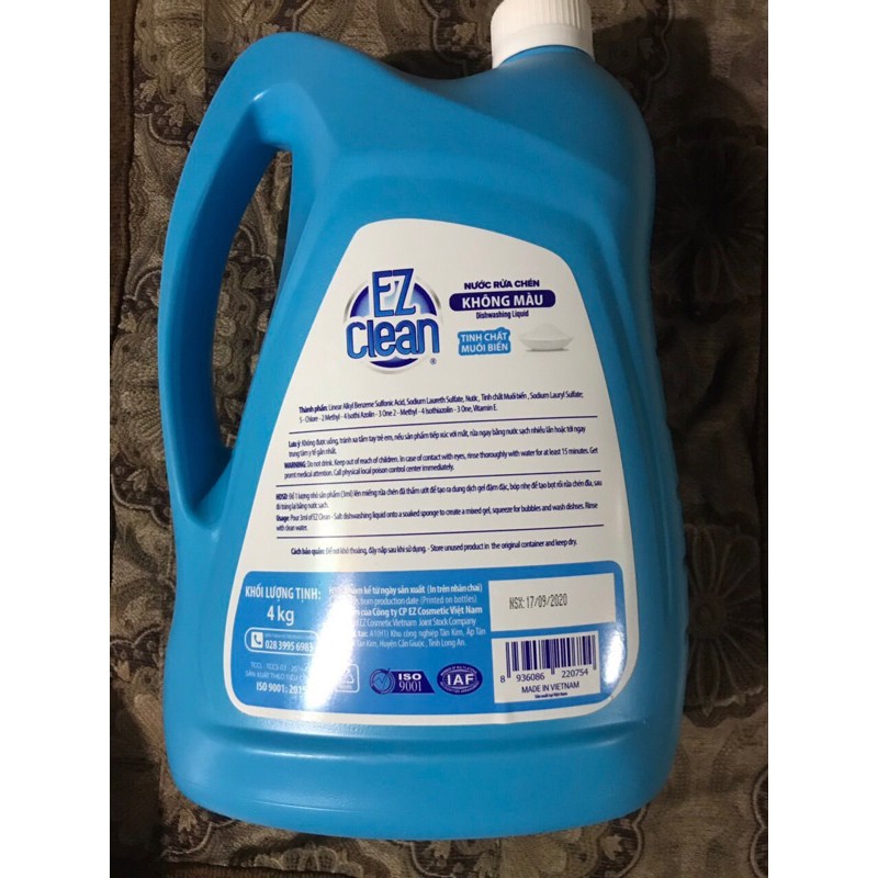 nước rửa chén EZ CLEAN không màu hương bưởi, chanh,muối 4kg