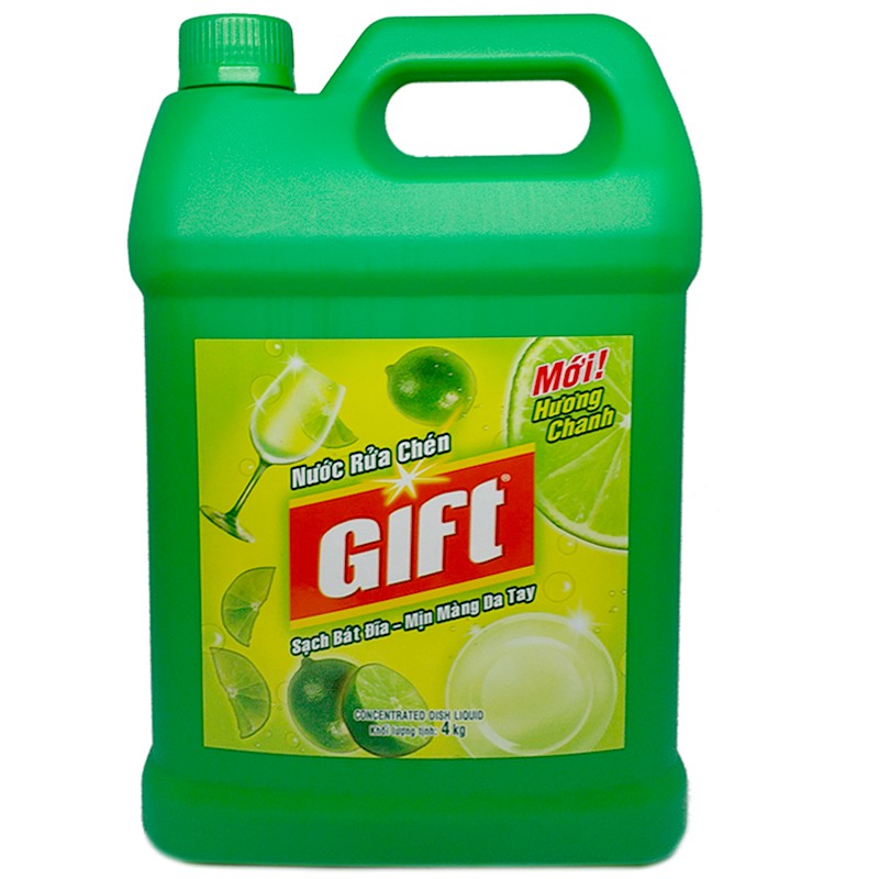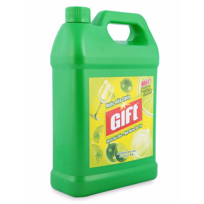 - Nước rửa chén Gift trà chanh 4L chứa tinh chất trà, tinh chất chanh giúp khử sạch các loại mùi tanh khó chịu và bám lâu, đồng thời diệt khuẩn hiệu quả, bảo vệ sức khỏe của cả gia đình.