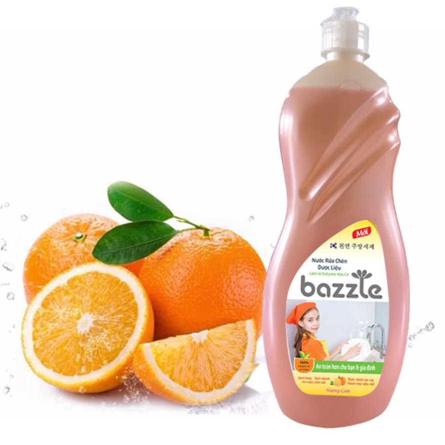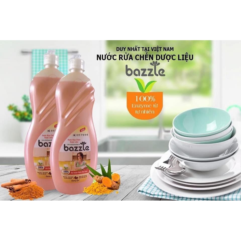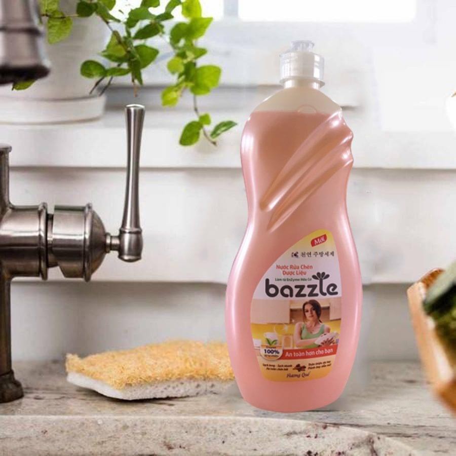 Nước rửa chén Hàn Quốc Bazzle chiết xuất Enzym hữu cơ - công nghệ sinh học tặng kèm miếng xơ rửa bát