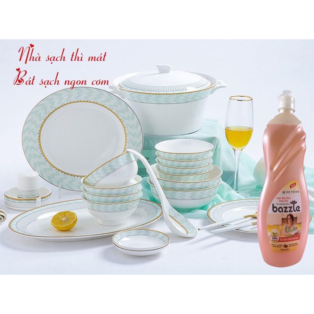 Nước rửa chén Hàn Quốc Bazzle bát tặng kem miếng xơ rửa bát- Công thức độc quyền cực mạnh dựa trên TỔ HỢP ENZYME HỮU CƠ ( nguồn gốc thực vật)