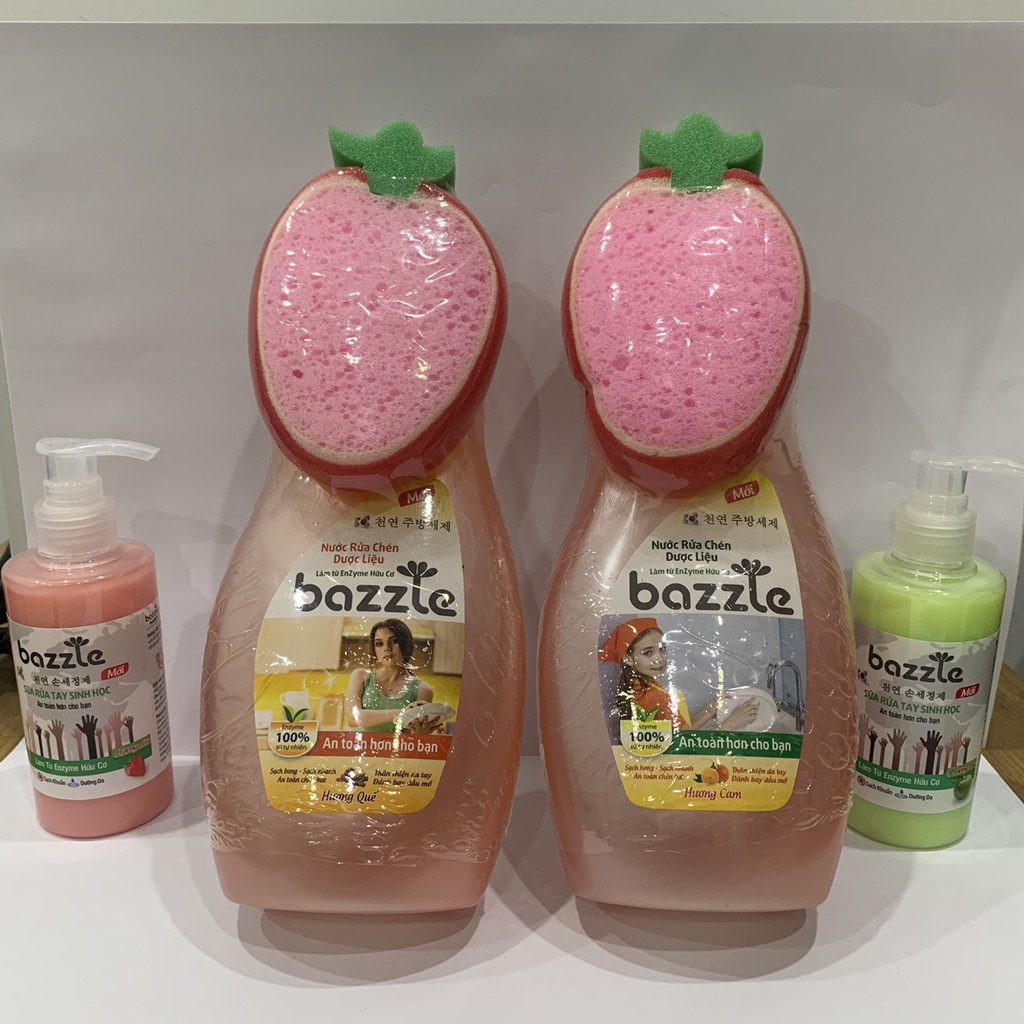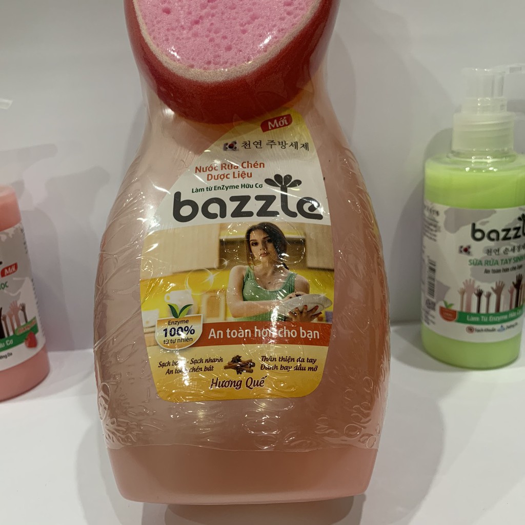 Giới thiệu Nước rửa chén Hàn Quốc Bazzle chiết xuất Enzym hữu cơ - công nghệ sinh học tặng kèm miếng xơ rửa bát