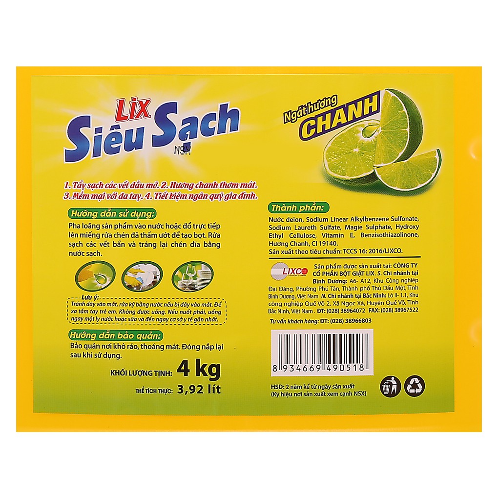 Nước rửa chén Lix Siêu sạch hương Chanh can 3.6kg