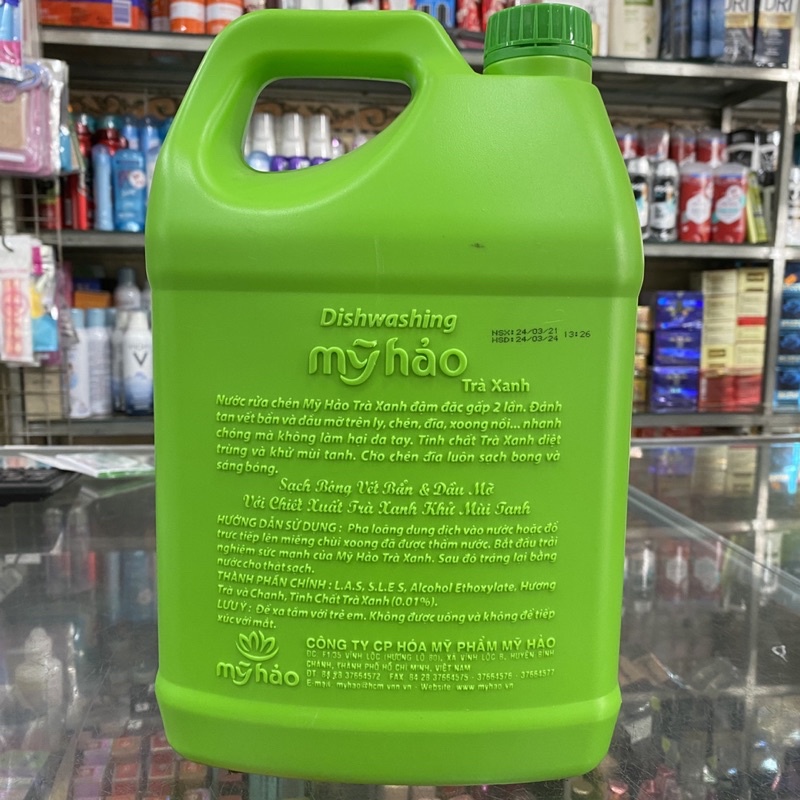Nhà cửa & Đời sống > Dụng cụ nhà bếp > Khác || Nước rửa chén Mỹ Hảo hương trà xanh can 3.8kgCòn hàng