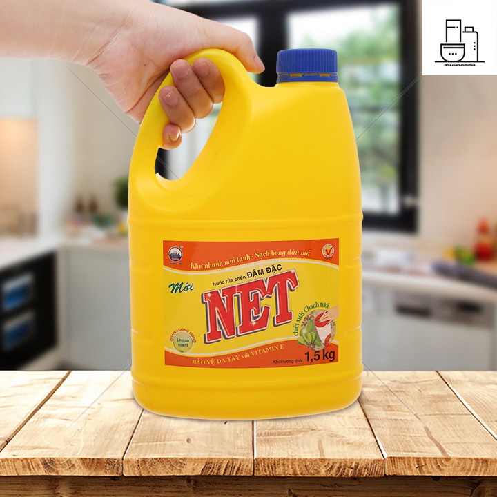 - Nước rửa chén NET chiết xuất chanh tươi can 1.46 lít giúp đánh tan các vết dầu mỡ cứng đầu.