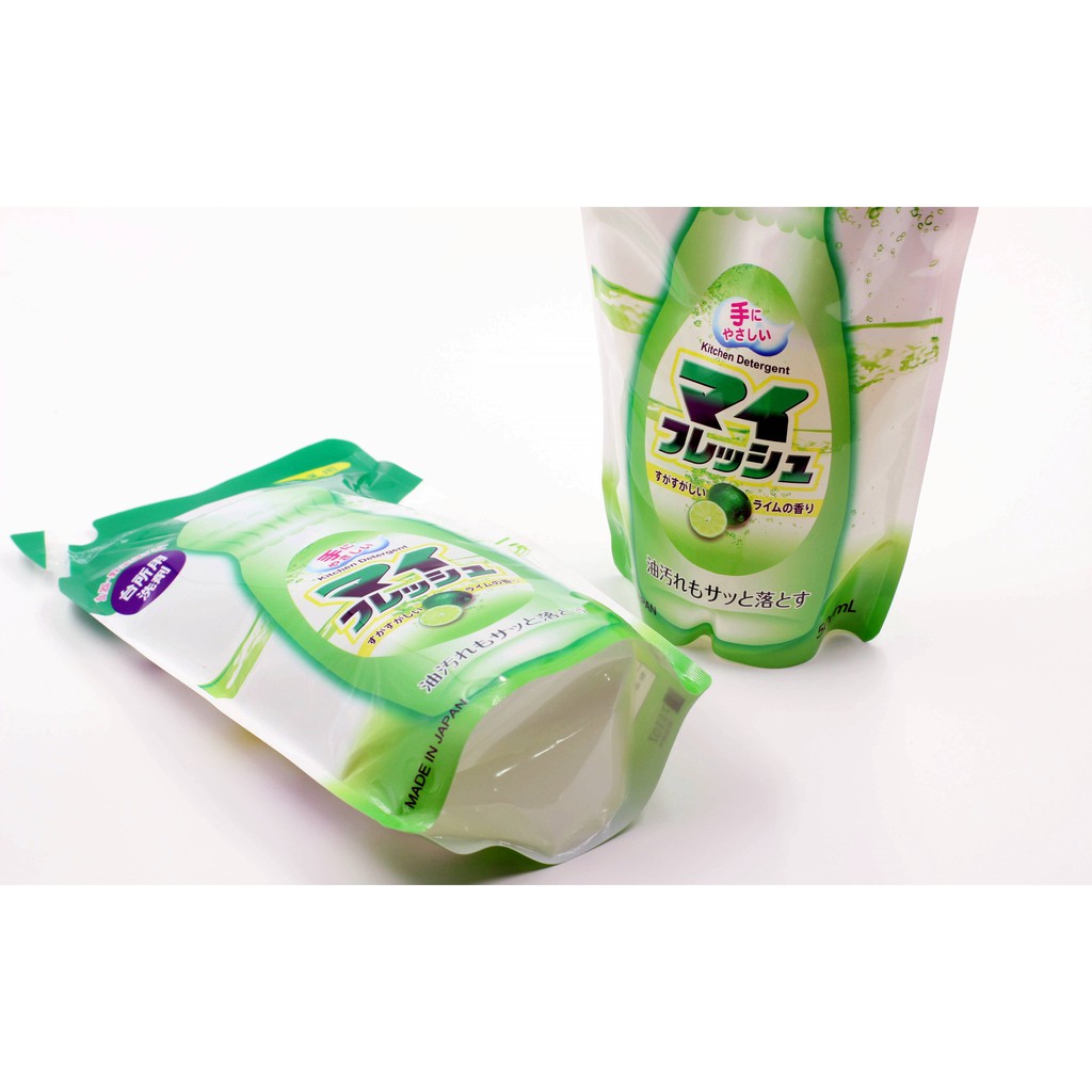 Nước rửa chén nội địa Nhật - Rocket hương chanh loại túi 500ml_Rửa được cả rau, củ, quả.