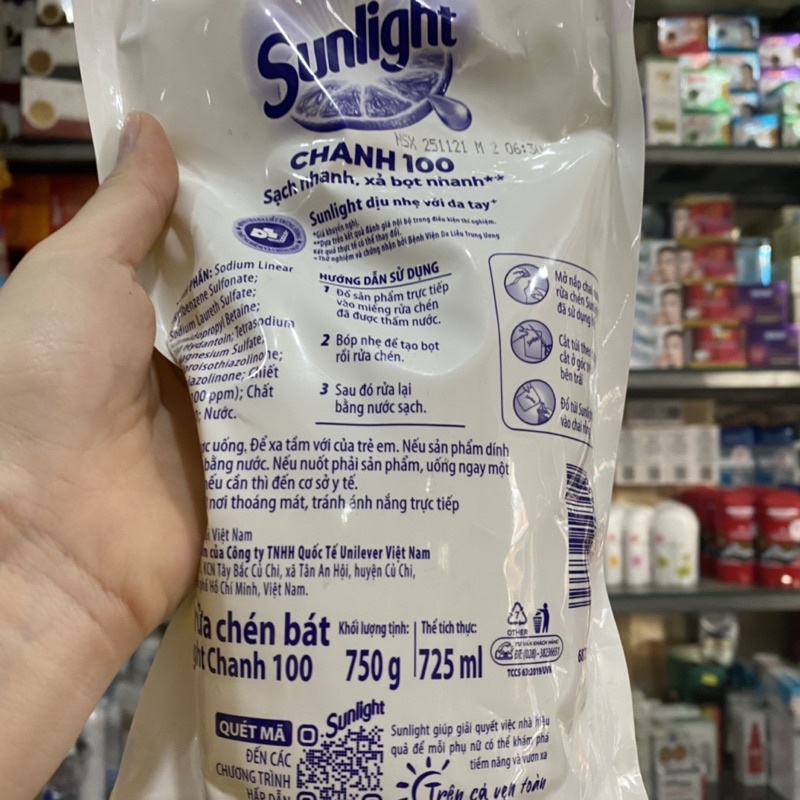 Nước rửa chén Sunlight Chanh 100 chiết xuất chanh tươi túi 750g- Nơi sản xuất: Việt Nam
