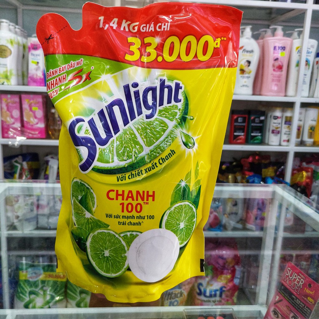 Nước rửa chén Sunlight chanh với chiết xuất chanh trong từng giọt, giúp đánh bay dầu mỡ, ngày cả trên đồ nhựa, với sức mạnh như 100 trái chanh.Thẻ tích: 1.4kg