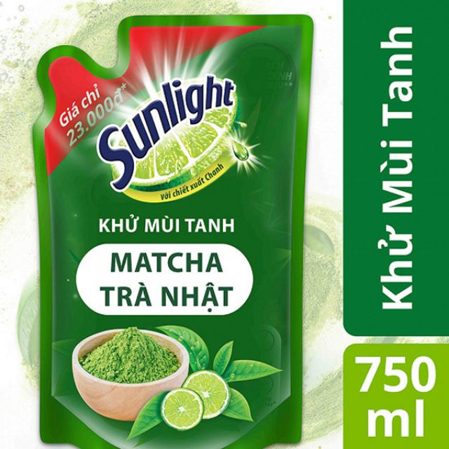 Hình ảnh Nước rửa chén Sunlight hương Matcha Nhật Bản và Chanh gói 750g