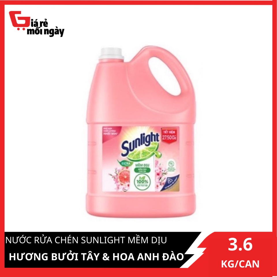 Giới thiệu Nước Rửa Chén Sunlight Mềm Dịu Hương Bưởi Tây & Hoa Anh Đào Chai 3.6kg