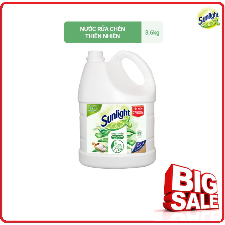 Nhà cửa & Đời sống > Dụng cụ nhà bếp > Khác || Nước Rửa Chén SUNLIGHT Thiên Nhiên Muối Khoáng & Lô Hội Can 3,6KgCòn hàng