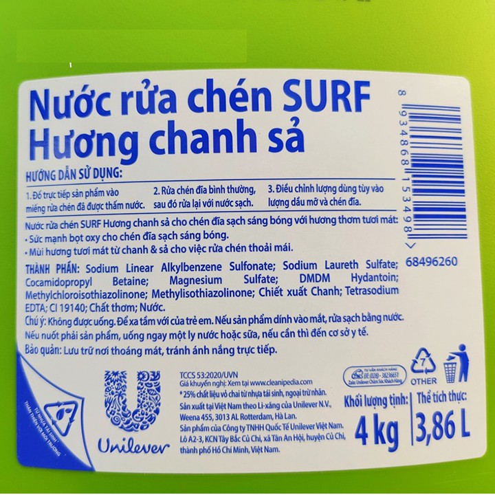 Nhà cửa & Đời sống > Dụng cụ nhà bếp > Khác || Nước Rửa Chén Surf Hương Chanh Sả Can 3,8kgCòn hàng