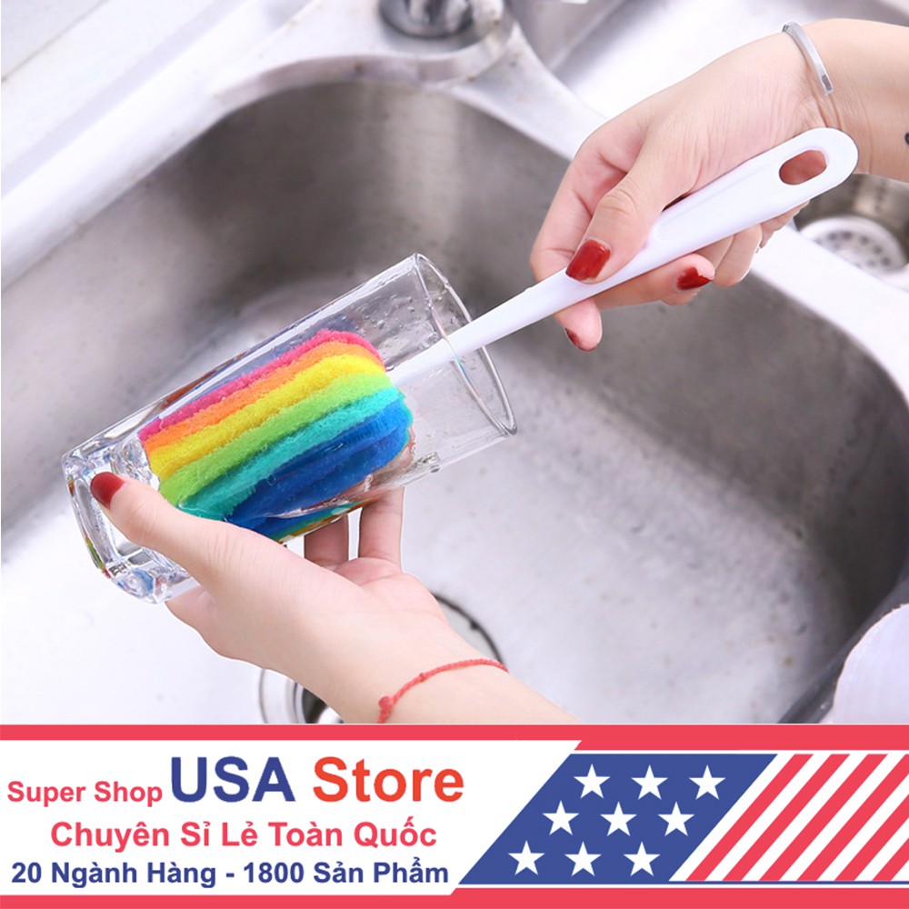 Cây Rửa Cốc Ly 7 MÀU - Dụng Cụ Cọ Bọt Biển Rửa Vệ Sinh Bình Sữa