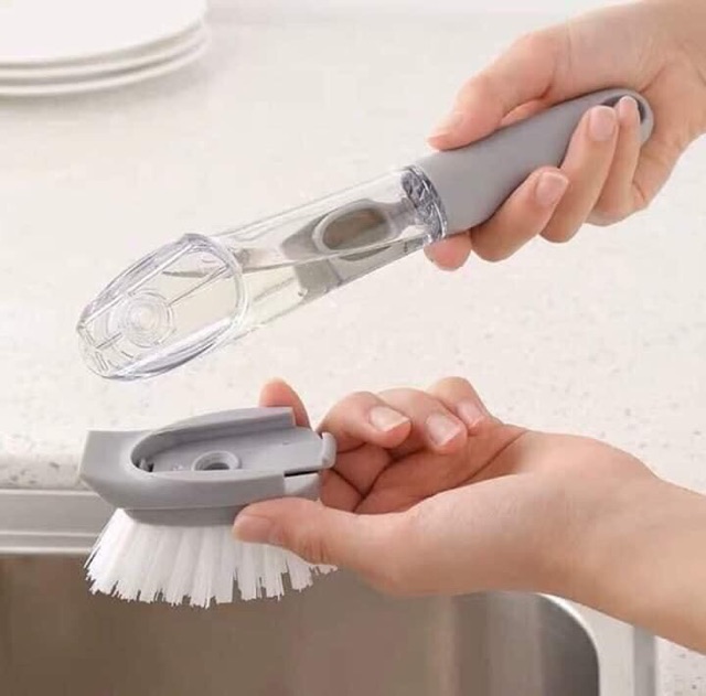 ➡ Sử dụng dễ dàng: tháo miếng cọ, đổ nước rửa vào phần chứa ở tay cầm, lắp lại & không lo hết nước rửa.