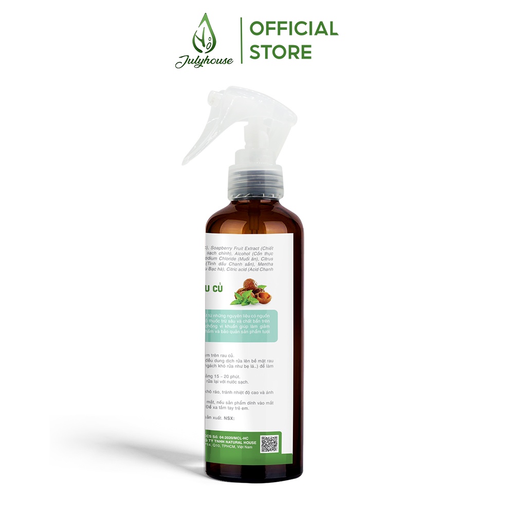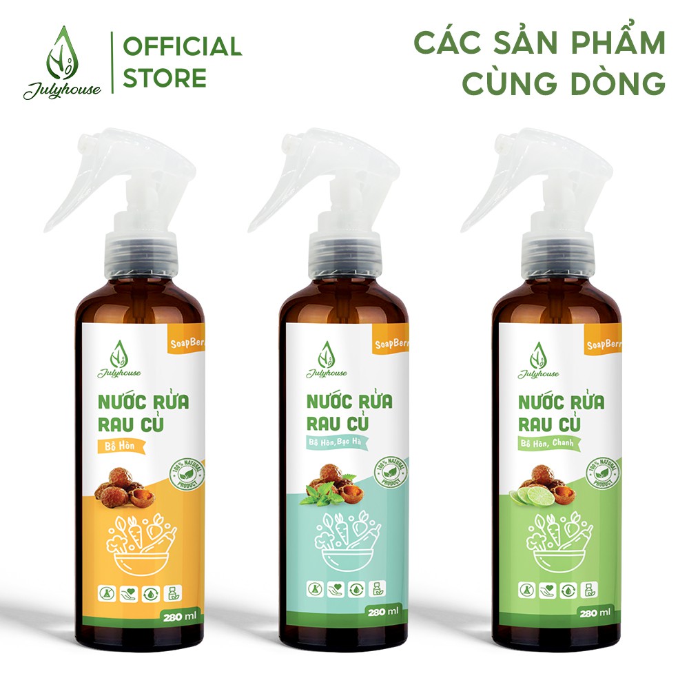 Nước rửa rau củ quả chiết xuất Bồ Hòn và tinh dầu Chanh 280ml JULYHOUSE loại bỏ chất độc hại và chất bẩn