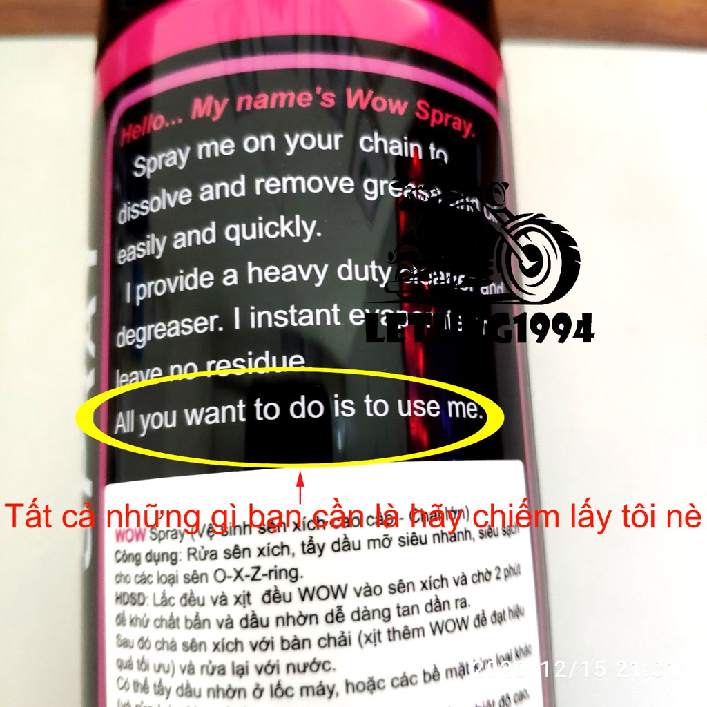 Ô tô > Dầu nhớt và phụ gia ô tô > Mỡ & Chất bôi trơn || Rửa sên WOW Spray Thái Lan 600ml chính hãngCòn hàng