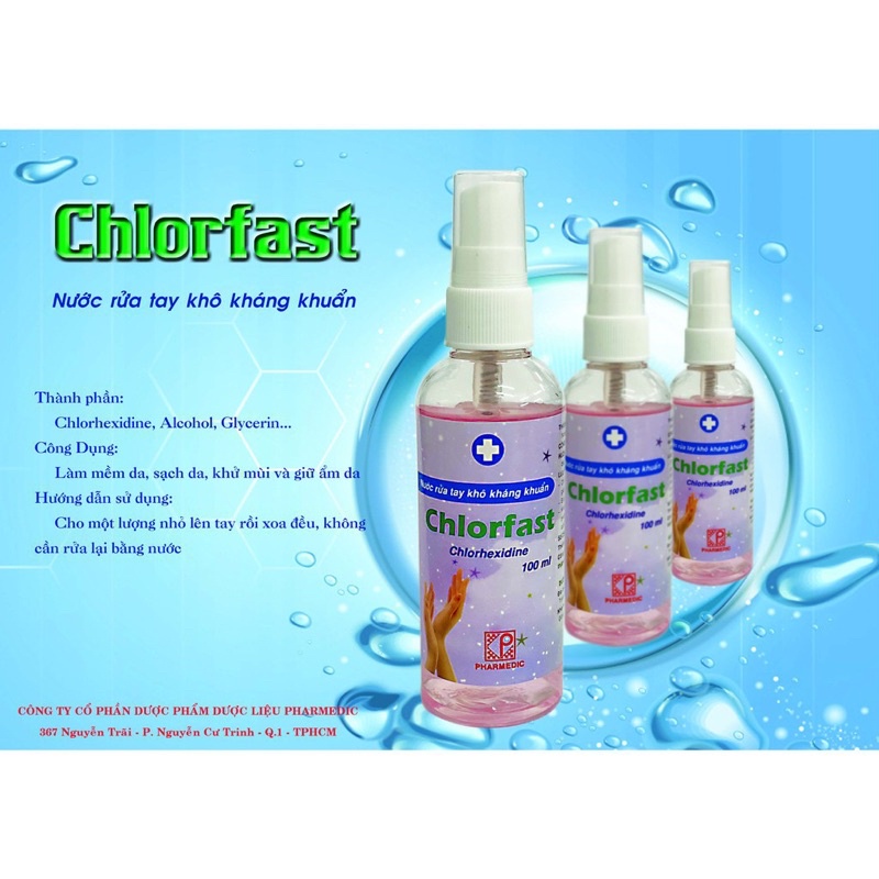 Thành phần : Chlohexidine, Acohon, Glycerin, Nonoxynol -9, Fragrane, CL 14700, Water.Nước rửa tay CHLORFAST giúp vệ sinh sát khuẩn mọi lúc mọi nơi mà không cần rửa lại với nước. Với thành phần tự nhiên mà không gây hại cho da tay. An toàn cho cả người lớn và trẻ em, bảo vệ sức khoẻ cho mọi người trong gia đình
