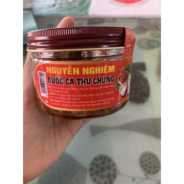 Sản phẩm ruốc cá thu chưng Nguyễn Nghiêm được làm từ thịt cá thu tươi 100%, không chất bảo quản, không dùng dầu chiên lại.Sản phẩm chứa nhiều DHA và omega 3 rất tôt cho ngừoi già và trẻ nhỏ