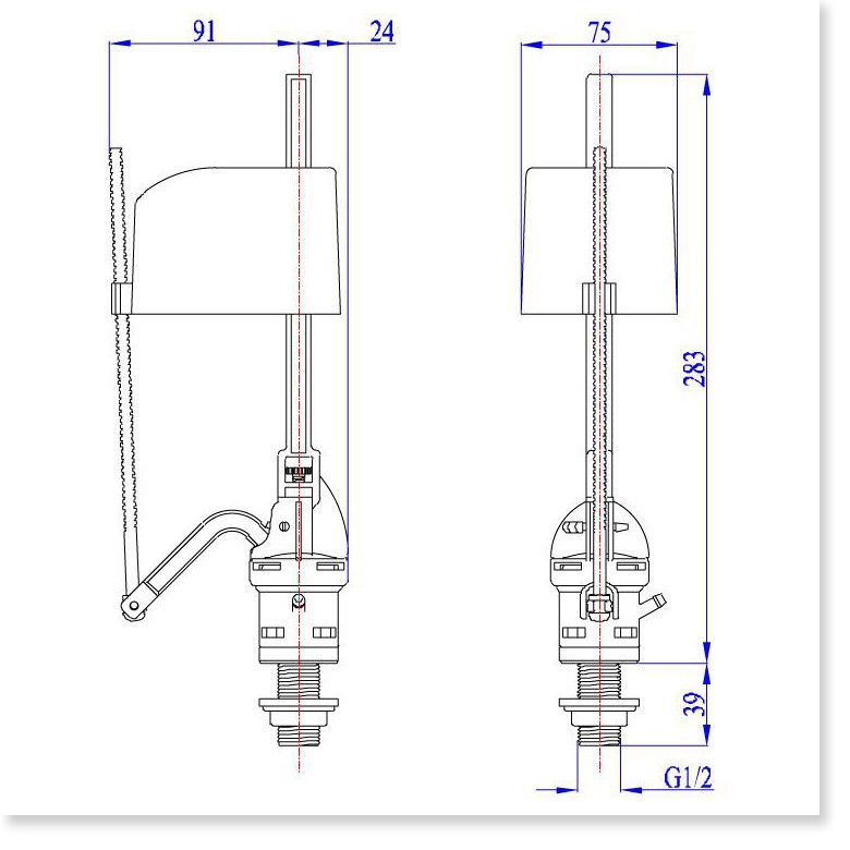 Giới thiệu Bộ ruột dành cho các loại bồn cầu 2 nút nhấn, cọc nhấn cao 26cm (két nước rời)