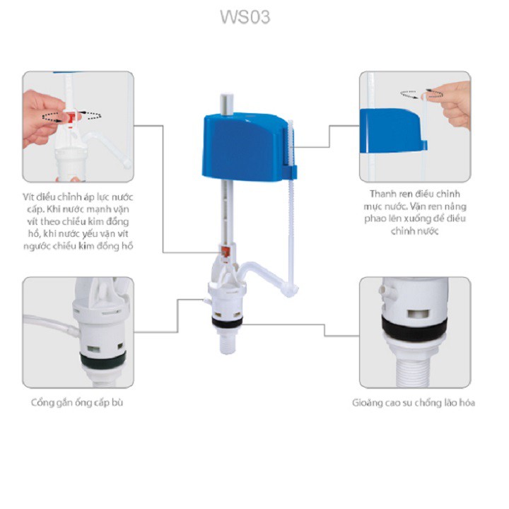 Nút nhấn có thể điều chỉnh cao hoặc thấp tùy theo từng loại bồn cầu